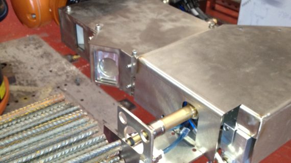 MIG welding of the label is done through two completely independent and simultaneous welding systems, each capable of securing the label on its own. But the other has no chance of welding successfully due to the presence of a deep groove on an uneven product.